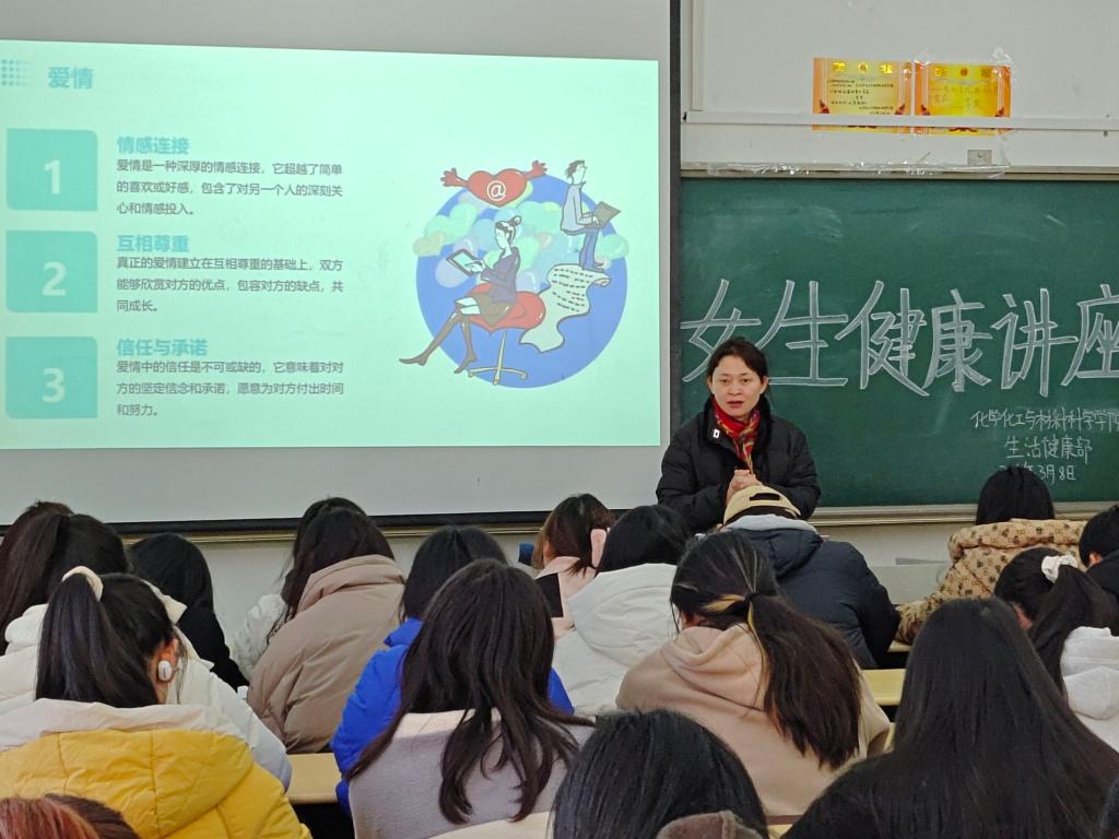 3月8日下午,英国be365官网在综合楼1208教室举办女生健康教育专题讲座。讲座由公司女生教育工作室李春芳老师主讲,部分女生聆听了讲座。