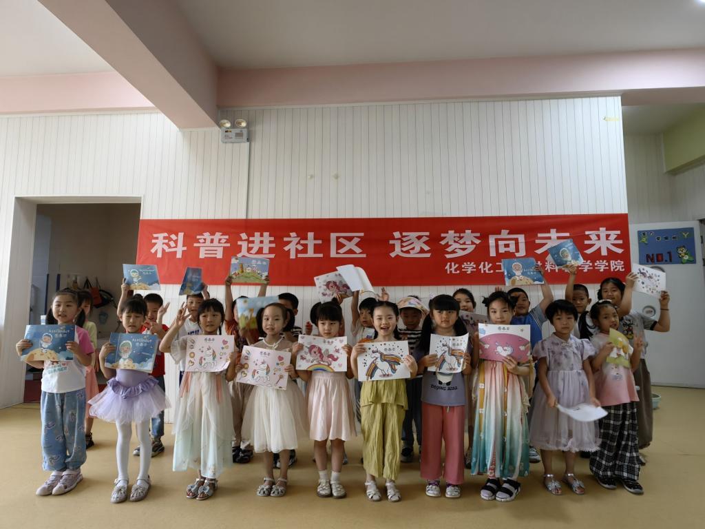 志愿者一行来到社区幼儿园,活动现场,志愿者们变成化学魔法师,生动地演绎了牛奶动画,彩虹雨等科学小实验,将实验演示与理论讲授相结合,孩子们专注观察,动手实践,不时抛出有趣的问题,展现出十足的好奇心和求知欲。最后,小朋友们亲手尝试了是中国民间传统而独特的染色工艺——扎染,现场气氛达到了高潮。整场活动内容丰富有趣,极大地激发了孩子们的想象力和求知欲,真实感受到化学实验的魅力。
