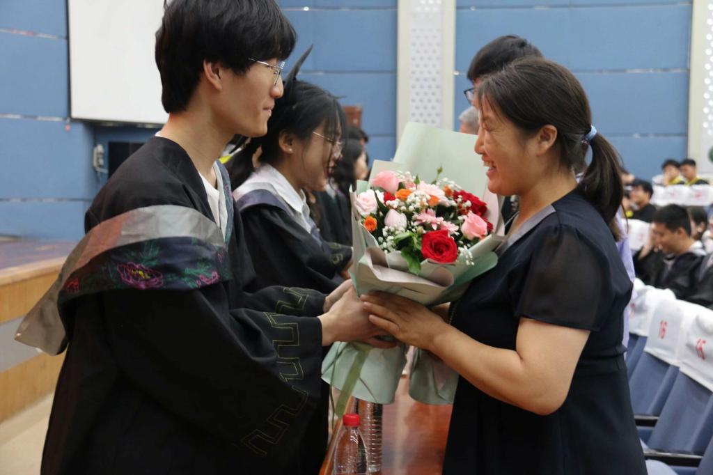 毕业生代表为老师们献上了饱含深情和敬意的鲜花,对老师们的悉心教导和辛勤付出表示衷心感谢。