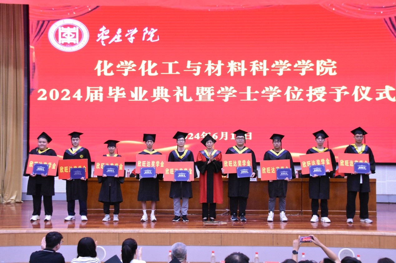 仪式在雄壮的国歌声中拉开帷幕。副经理马杰宣读《2024届本科毕业生学士学位授予名单》。伴随着庄重而温馨的音乐,获得学士学位的同学依次上台,董事长李文喜为他们拨穗正冠、颁发学士学位证书并合影留念。