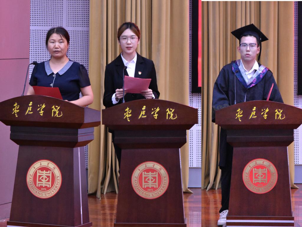 教师代表闫春燕为全体毕业生送上了最真挚的祝福,并勉励他们要保持学习的热情、拥有健康的身心、常怀感恩之心、勇于担当责任。毕业生代表刘体震回顾了四年的学习和成长历程,表达了对母校的眷恋不舍和对未来的无限憧憬,在校生代表孙馨悦在发言中表示,无论毕业生身处何方,母校必定会是他们坚实的后盾。