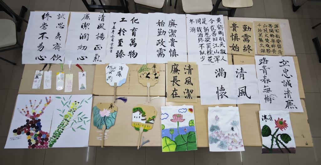 活动现场,同学们紧扣“廉洁”主题,分享了古今廉洁名人事迹、身边同学或者影视作品中的廉洁故事,讲述了心得体会。手工制作环节,充分发挥想象力和动手能力,从不同角度诠释廉洁的内涵,一件件手工作品表达对廉洁文化的理解和感悟。