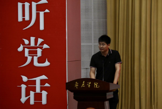 新生班主任代表王超博士发言,结合自身求学经历,从“以学习为立身之本”“以尝试为成长之翼”“心怀家国坚定信仰”三方面分享感悟,鼓励新生在大学中踏实积累、积极探索,将个人成长与家国发展相连。