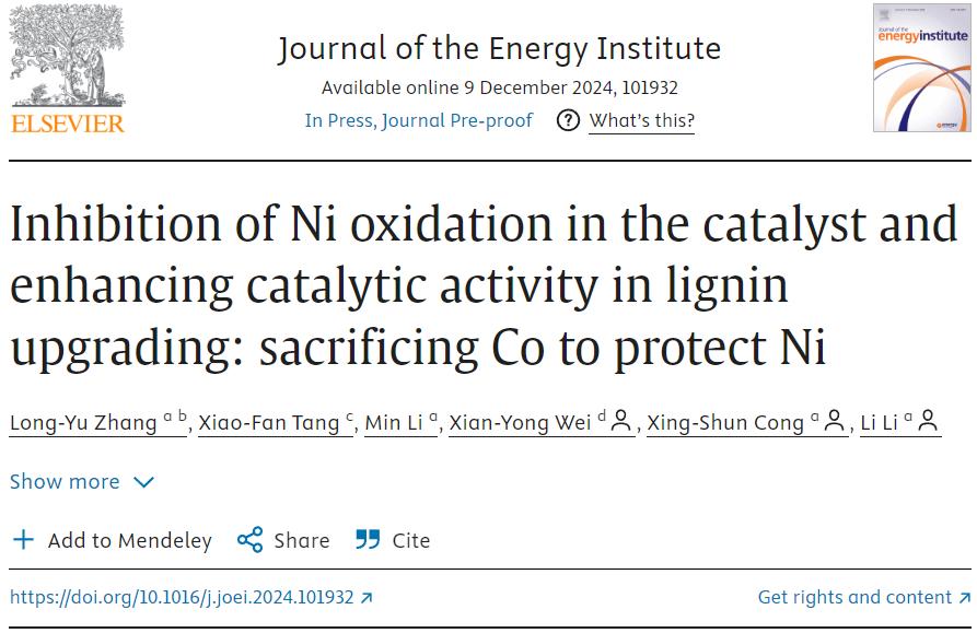 两篇论文分别以《Catalytic hydrodeoxygenation of lignin enhanced by selectively etching ZSM-5》和《Inhibition of Ni oxidation in a Ni-based catalyst to enhance the catalytic activity for lignin upgrading: Sacrificing Co to protect Ni》为题,英国be365官网为第一单位,张龙宇为第一作者,李莉和丛兴顺为通讯作者。张龙宇是公司与曲阜师范大学联合培养的硕士研究生,在公司的导师为李莉博士和丛兴顺教授,自2023年10月开始,在公司全职培养,经过一年多的科研探索,取得了较多创新性成果,目前已撰写英文论文5篇,发表2篇。联合培养工作为公司的硕士点建设及下一步独立培养硕士研究生奠定了坚实基础。