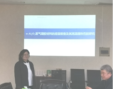 纪其燕博士以“α-Al2O3基气凝胶材料的组装制备及其高温隔热性能研究”为题进行了汇报。汇报主要围绕以稳定相的α-Al2O3基纳米材料作为结构单元,通过组装策略来构筑三维多孔气凝胶材料,并将其应用于高温隔热领域。