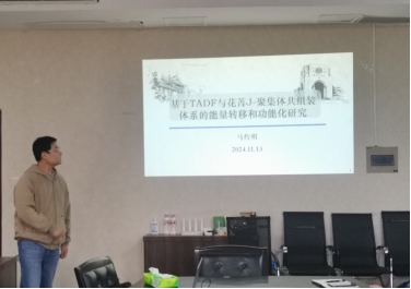 马灼明博士以“基于TADF与花菁J-聚集体共组装体系的能量转移和功能化研究”为题进行了汇报。汇报主要围绕以花菁染料J-聚集体为受体,热活化延迟荧光(TADF)材料为给体,构建可调控的FRET体系并尝试实现功能化的应用。