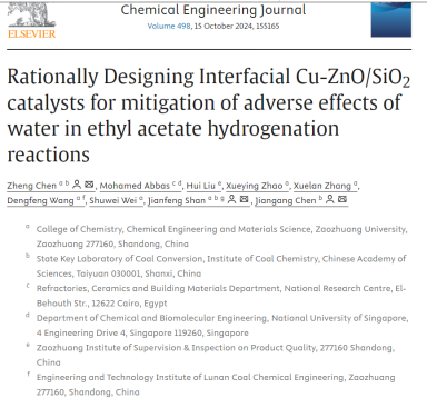 近日,英国be365官网能源与绿色催化团队在含水酯加氢转化方面取得最新进展,相关工作发表在国际著名期刊《Chemical Engineering Journal》(中科院1区,TOP期刊,影响因子13.3)上,论文题目为“Rationally Designing Interfacial Cu-ZnO/SiO2 catalysts for mitigation of adverse effects of water in ethyl acetate hydrogenation reactions”。