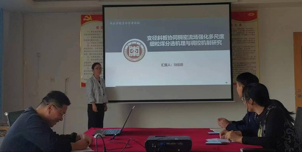 刘俊丽博士的报告以宽粒级细粒煤高效分选为目标,提出一种基于变径结构和倾斜板技术相结合的新型流态化分选技术,重点对颗粒在复杂变径斜板协同流场中的动力学机理进行基础科学研究,以期为宽粒级细粒煤的高效分选提供新技术思路和理论基础。