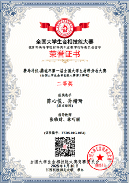 在综合分析总决赛中,公司材料科学与工程专业陈涵杨和焦文兵同学获个人三等奖,在创新应用赛道,凭借扎实的专业基础和出色的应用能力,王晴、杨文杰同学获得一等奖,陈心悦、孙婧琦获二等奖,冀永娇、王鑫阳获三等奖。