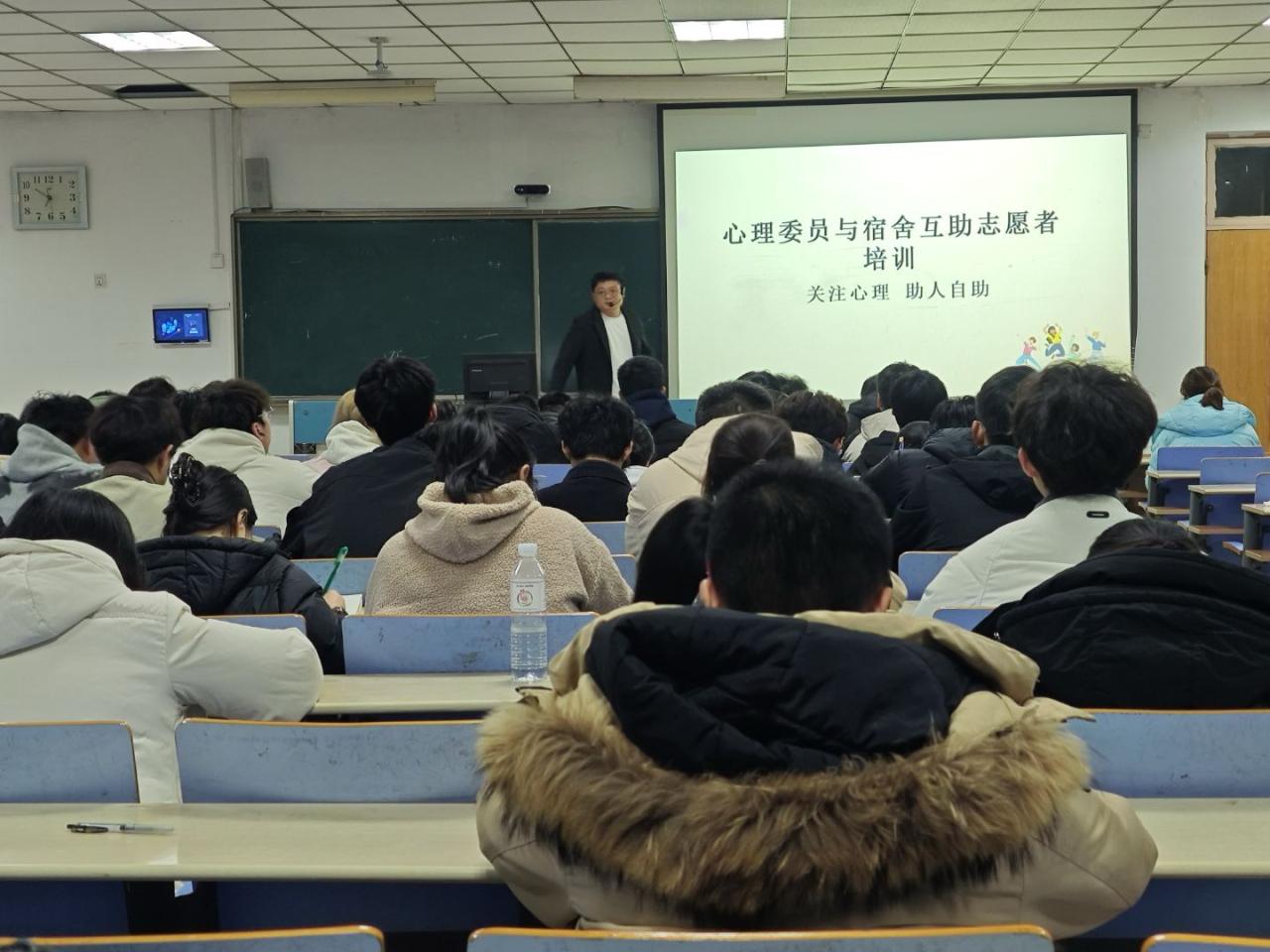 为深入贯彻落实公司关于加强老员工心理健康教育的工作要求,进一步提升心理育人工作实效,公司于3月11日在多媒体楼206举办"心手相连 护航成长"专题培训讲座。心理健康教育中心心理咨询师孔祥武老师为公司心理委员与宿舍互助志愿者进行心理培训,全院110名班级心理委员及宿舍互助志愿者参加培训。本次培训聚焦心理预防、情绪调适及人际支持三大核心议题,现场互动热烈。