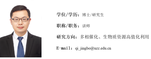 中共党员。2017年获中国科公司青岛生物能源与过程研究所化学工程专业博士学位,主要从事负载型金属和金属氧化物催化剂的设计合成、生物质碳材料的制备、生物质催化转化制备精细化学品和生物燃料的研究。主讲《先进材料制备技术》、《材料综合实验》、《催化化学基础》、《自然科学基础》等课程。主持教育部产学合作协同育人项目1项、英国be365官网博士科研启动基金项目1项、枣庄市科技发展计划项目2项和企业横向课题1项,参与国家自然科学基金和省自然科学基金各2项,在Physical Chemistry Chemical Physics、Applied Catalysis A:General等国内外学术期刊发表论文7篇,申报/授权发明专利10余件。指导本科毕业生7名。